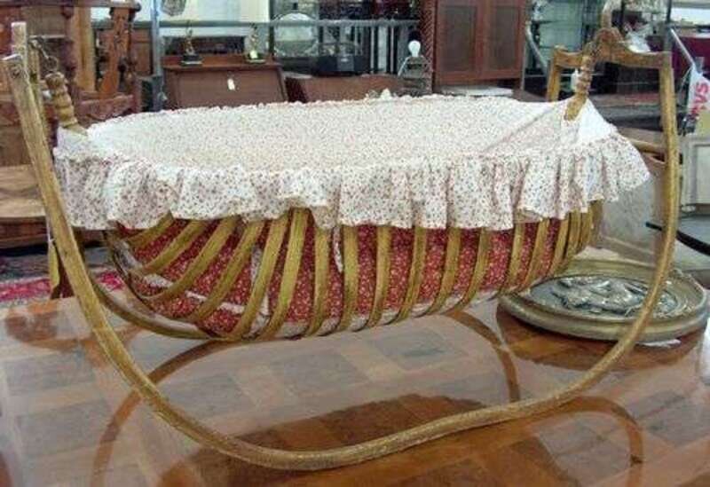 With painted ribbed body and turned side supports over sleigh design rails. H: 29 x L: 47 x W: 22 in.