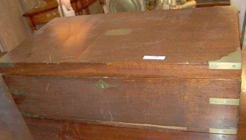 Brass mounts with blue felt interior and compartments. H: 7, W: 22 1/2, D: 11 3/4 in.