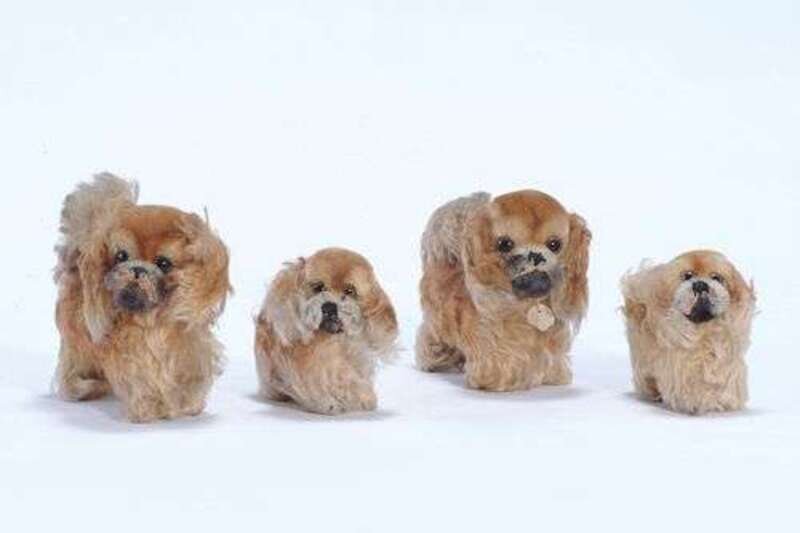 One with "Perky" Steiff tag. H: 5 1/2 in., smallest, 4 in.