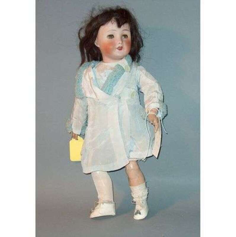 Probably German with composition jointed arms and legs. Painted face and movable eyes. H: 20 in.