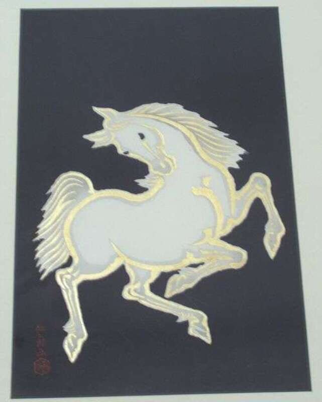 Each: 24 1/2 x 11 in., together with a pair of woodblock prints of horses by Nisabno Ito. (4).