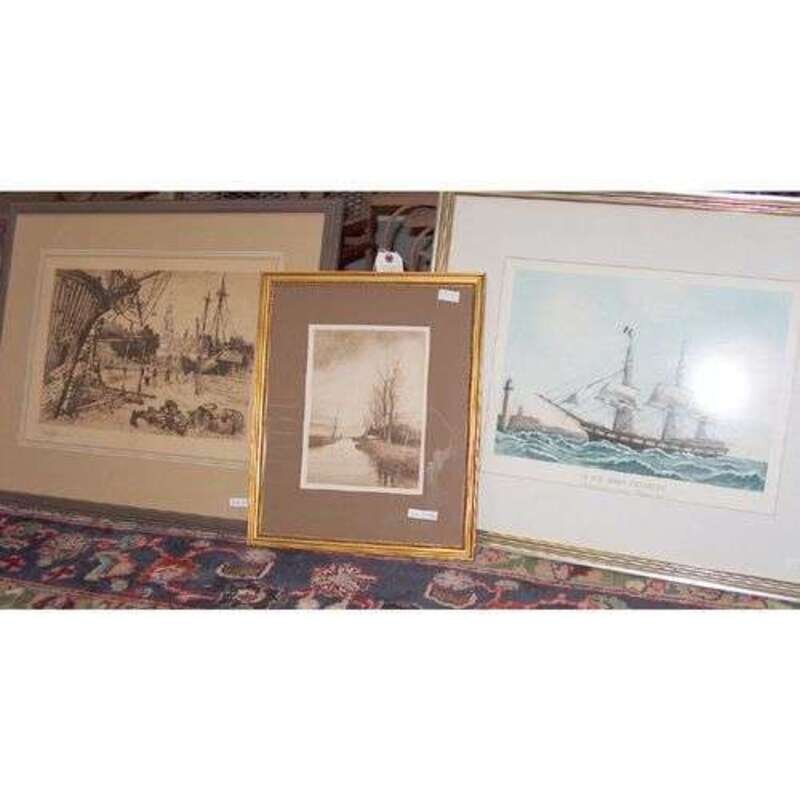 Includes three etchings, a wash drawing and one color print, 19th/20th c.