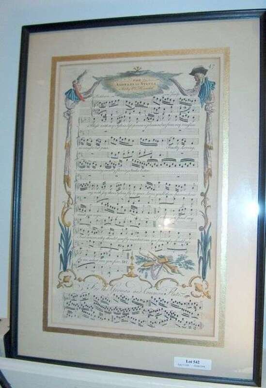 "The Address to Sylvia Set By M. Handel." [London?]: G. Bickham, [ca. 1780-1810], approx. 13 x 8 in., generally clean. Framed.