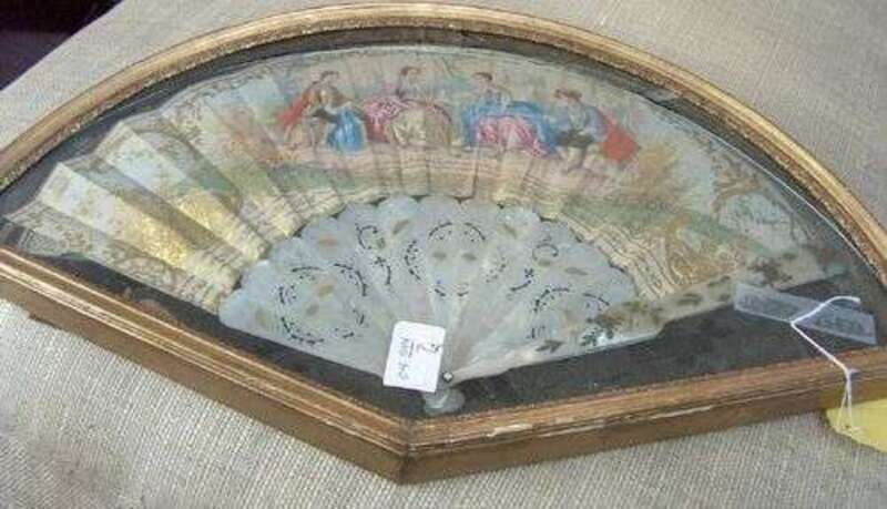 MOTHER-OF-PEARL FAN IN SHADOWBOX FRAME