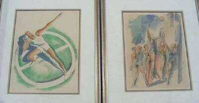 PAIR OF FRAMED OLYMPIC WATERCOLORS