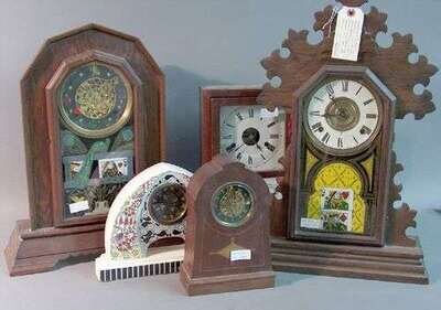 Three Victorian shelf clocks, one steeple clock, three other shelf clocks.