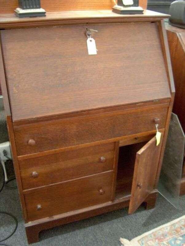OAK SLANT-TOP, MISSION-STYLE DESK