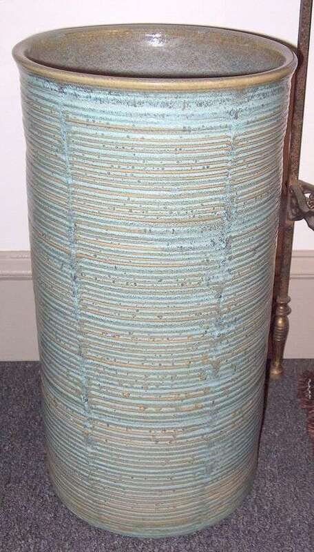 Green moss colored cylindrical ribbed design umbrella jar. H: 20 in x Dia: 11 1/2 in.