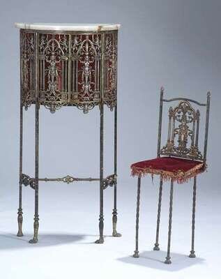 MARBLE-TOP TELEPHONE CABINET & CHAIR