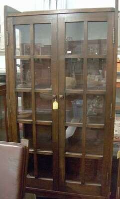 ARTS & CRAFT-STYLE TALL OAK BOOKCASE