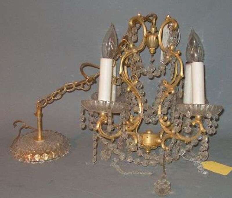 With four lights surmounted by brass scroll and prismed supports. H: 33 in. x W: 11 1/2 in.