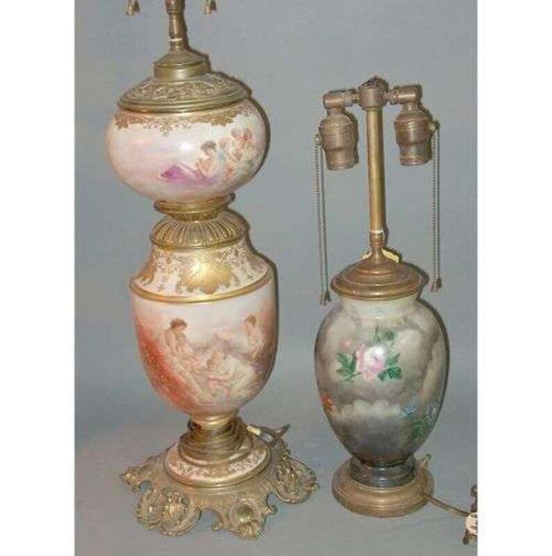 TWO HAND-PAINTED PORCELAIN LAMPS