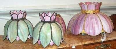 FIVE SLAG GLASS SHADES