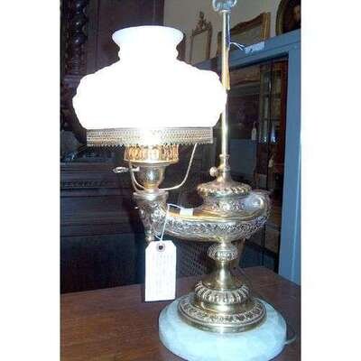 "ALADDIN" LAMP WITH WHITE GLASS SHADE