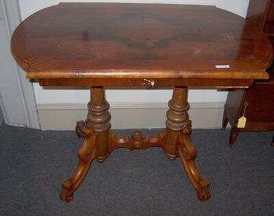 Square shaped tops raised on turned legs. H: 30, L: 39 1/2, W: 25 in.