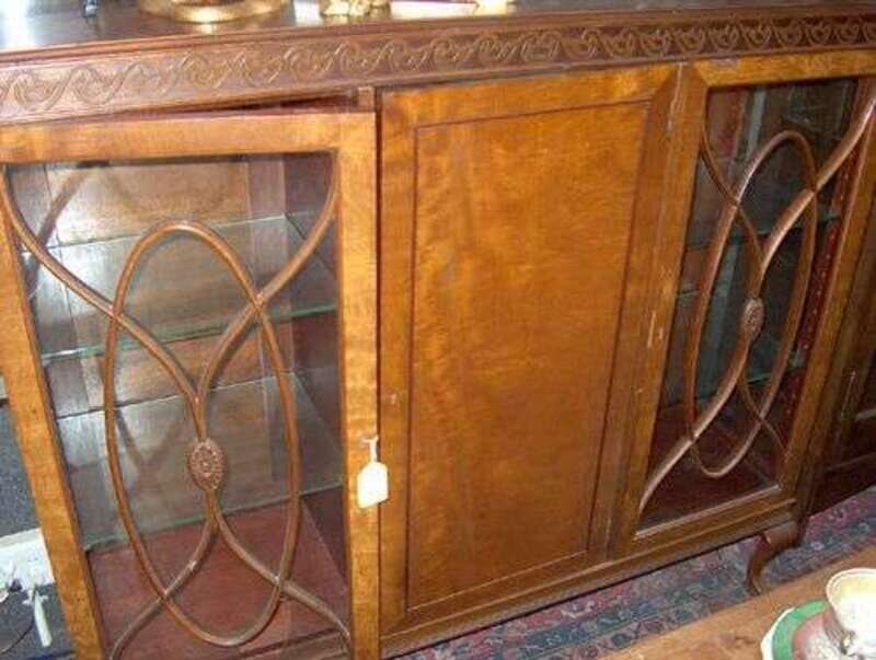 MAHOGANY AND GLASS THREE-DOOR DOOR CHINA CABINET