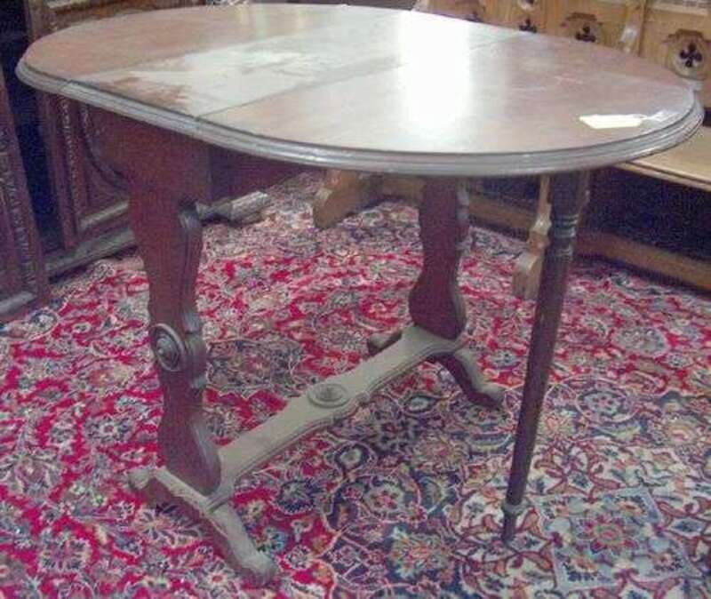 With two D-shaped leaves over carved and shaped side supports and stretcher. H: 30, L: 43, W: 30 in.