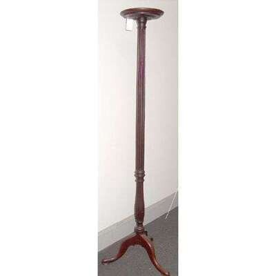 Round top on classical reeded split support terminating on cabriole legs. H: 77 x W: 24 in. at base.