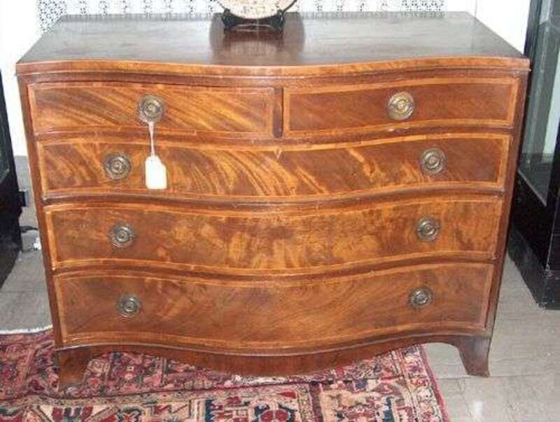 GEORGE III-STYLE SERPENTINE-FRONT MAHOGANY CHEST OF DRAWERS BY BAKER