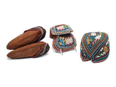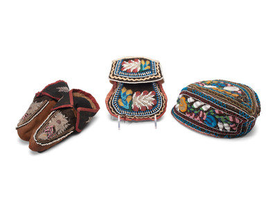 Haudenosaunee Beaded Purse, Moccasins, and Glengarry Cap