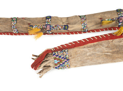 Sioux Beaded Hide Bowcase and Quiver, with Bow and Arrows