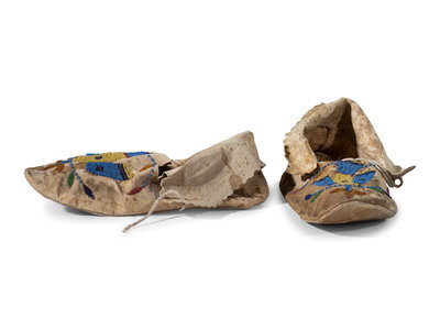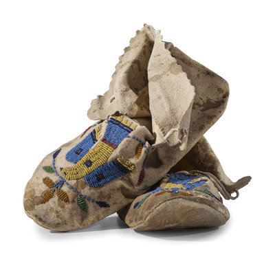 Santee Sioux Beaded Hide Moccasins, with Eagles