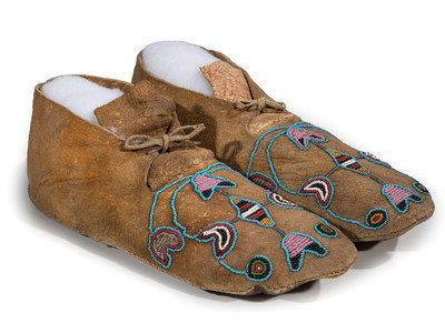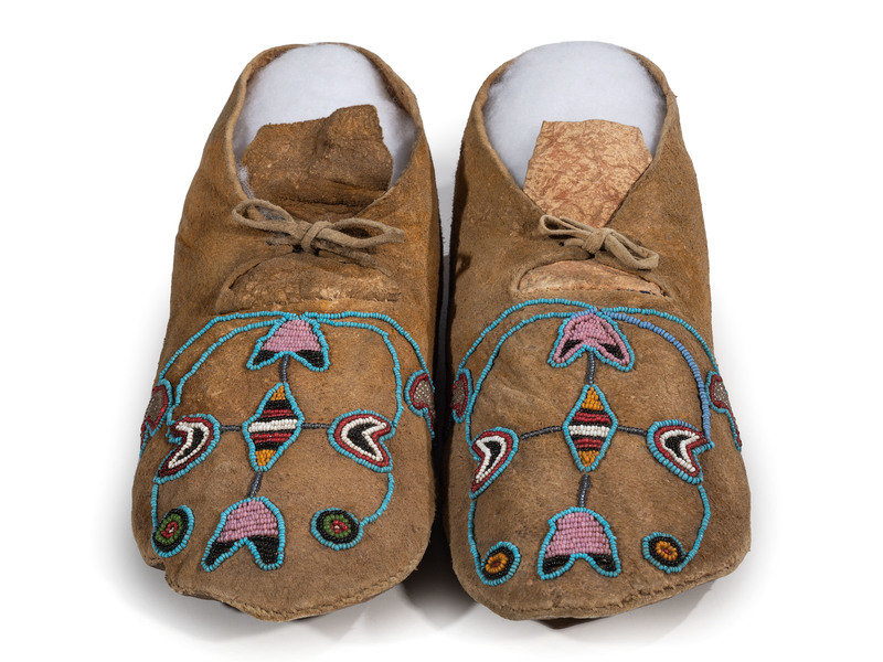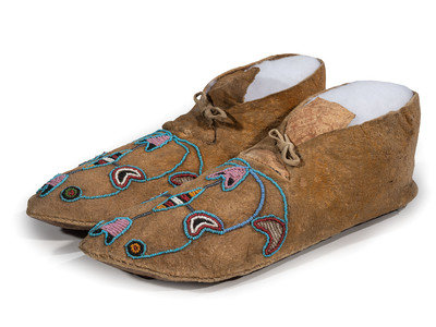 Apsáalooke [Crow] Beaded Hide Moccasins, with Buffalo Hide Parfleche Soles