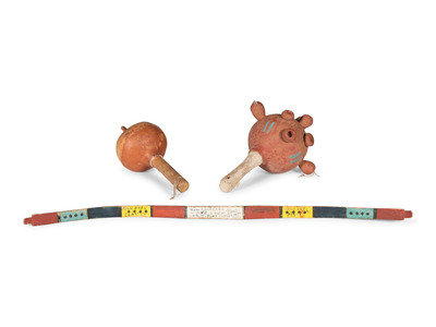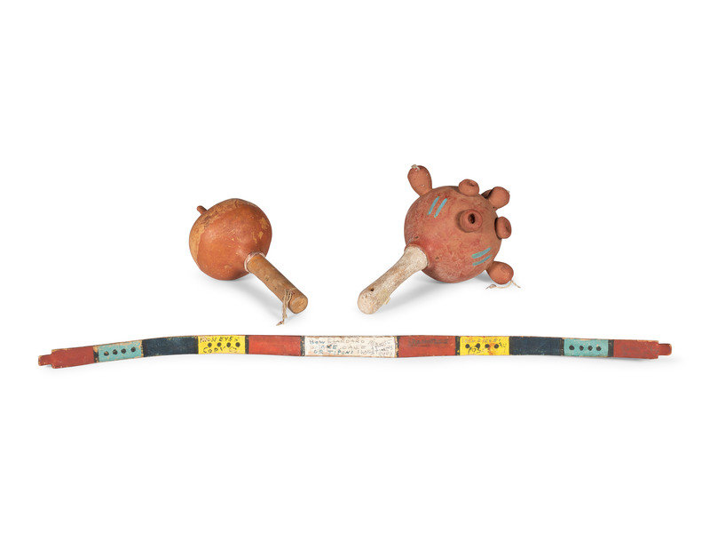 Pueblo Rattles, PLUS Bow, signed Iron Eyes Cody