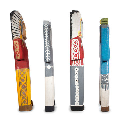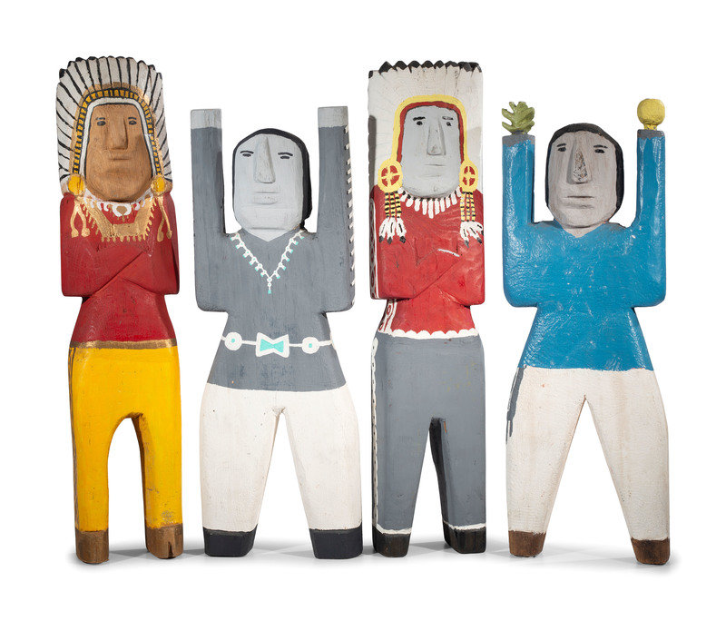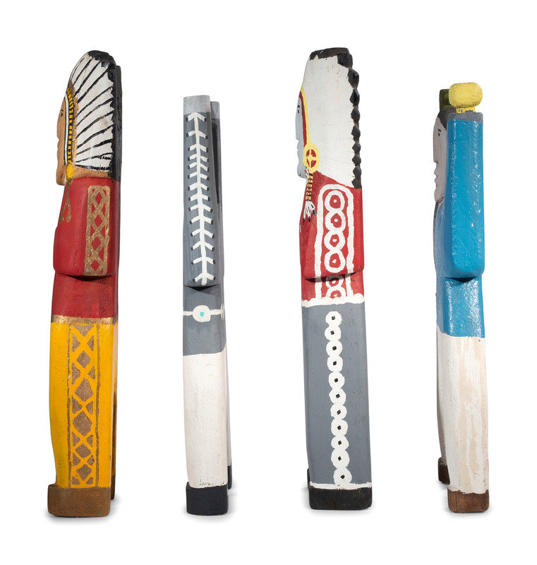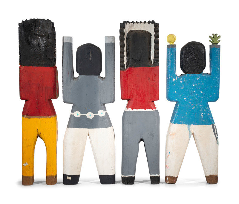 lot of 4, unsigned wood figures; each painted in bright and metallic colors