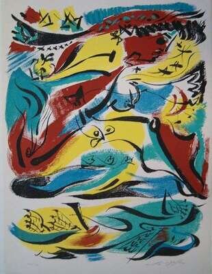 Pencil signed and numbered 86/130 in the margin. Color lithograph on BFK Rives paper.