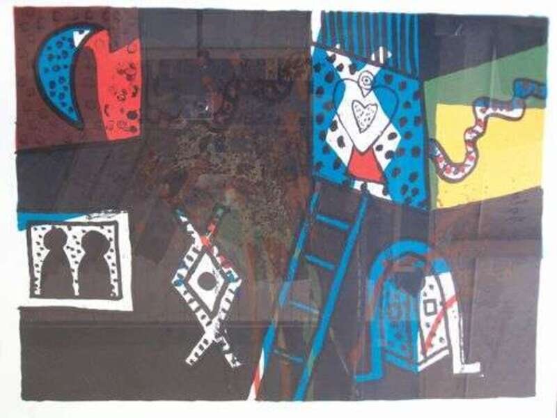 1970, pencil signed, titled, and numbered 67/75 in the margin. Color lithograph.