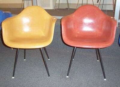 TWO RARE COLOR EAMES ARMSHELL CHAIRS