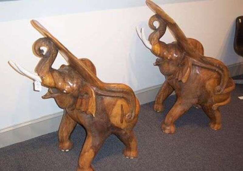 PAIR OF CARVED TROPICAL WOOD ELEPHANT CHAIRS