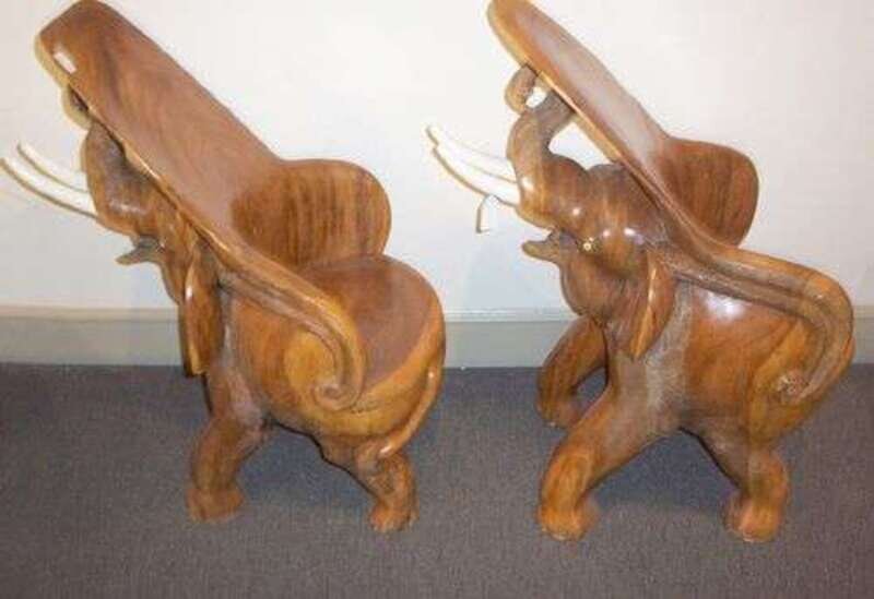 PAIR OF CARVED TROPICAL WOOD ELEPHANT CHAIRS