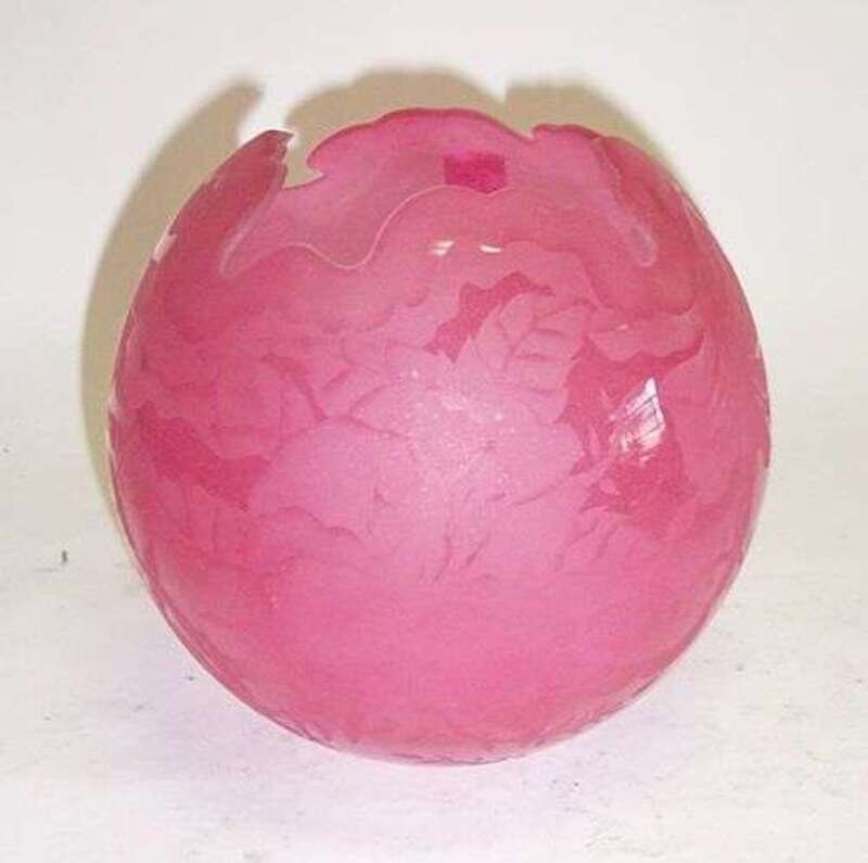Etched glass; engraved "HAWKE," includes original 1989 bill of sale and artist write-up. H: 7 1/4, Dia: 8 in.