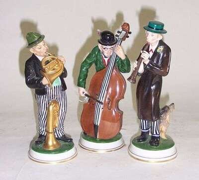 Painted and glazed porcelain: modeled by "K. HIMMELSTOSS." Hts: 7 1/2 in., and 8 1/3 in.
