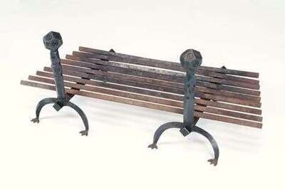 Wrought & cast iron; pair andirons, each with nine diamond cuts to back for removable log bars which taper from 41 1/2 to 34 in., firedogs H: 17, D: 20 1/2 in.