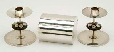SPRATLING SILVER BOX & CANDLESTICKS