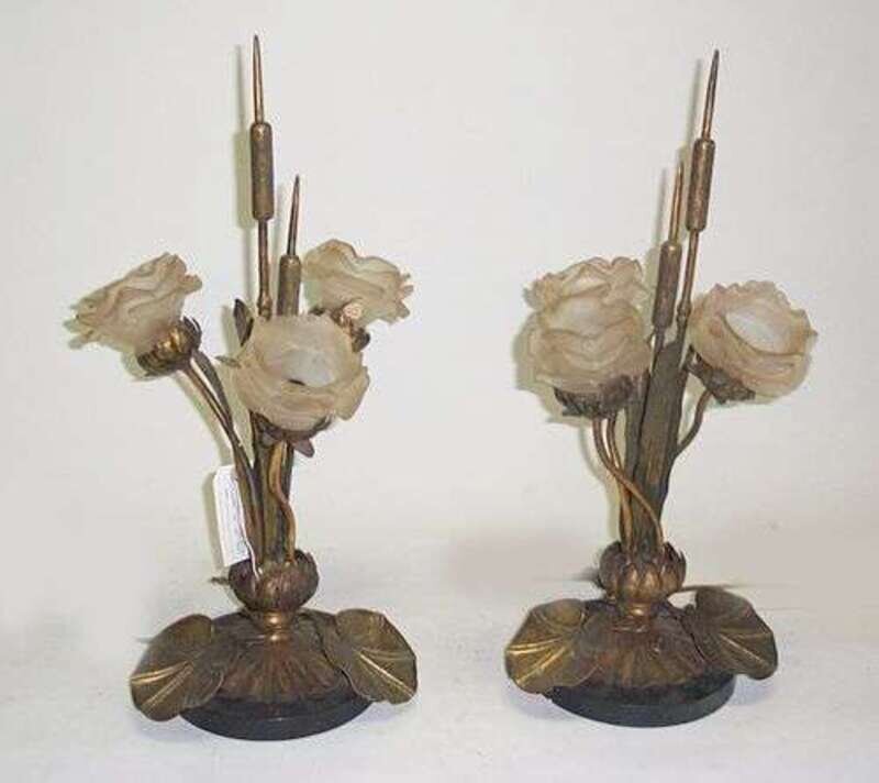 PAIR OF ART NOUVEAU FLORIFORM LAMPS