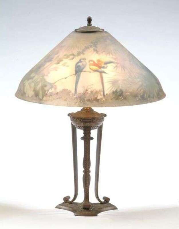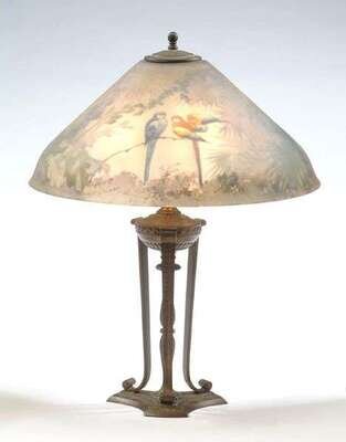 PAIRPOINT JUNGLE BIRD SCENIC LAMP