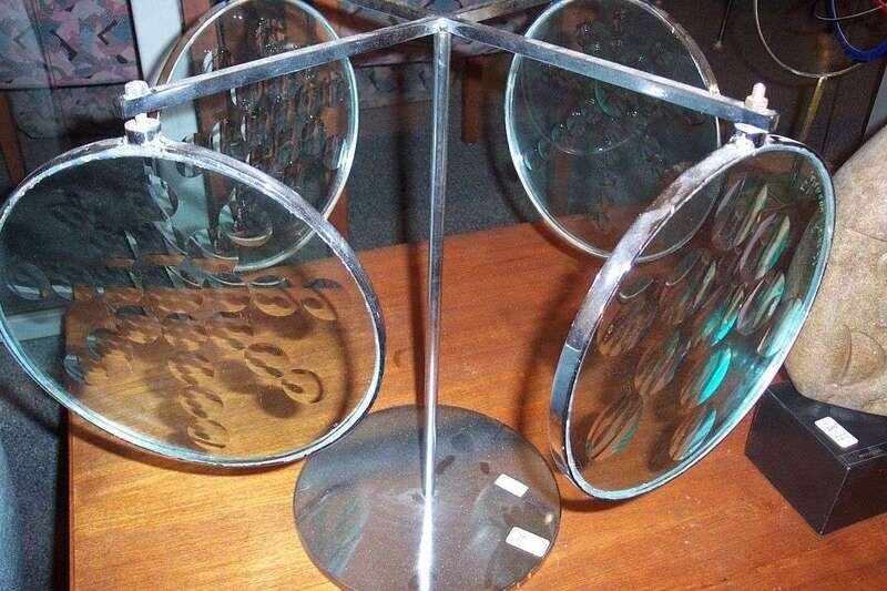 Steel, glass; engraved "Feliciano Bejar 73." H: 20, Dia: 20 in.