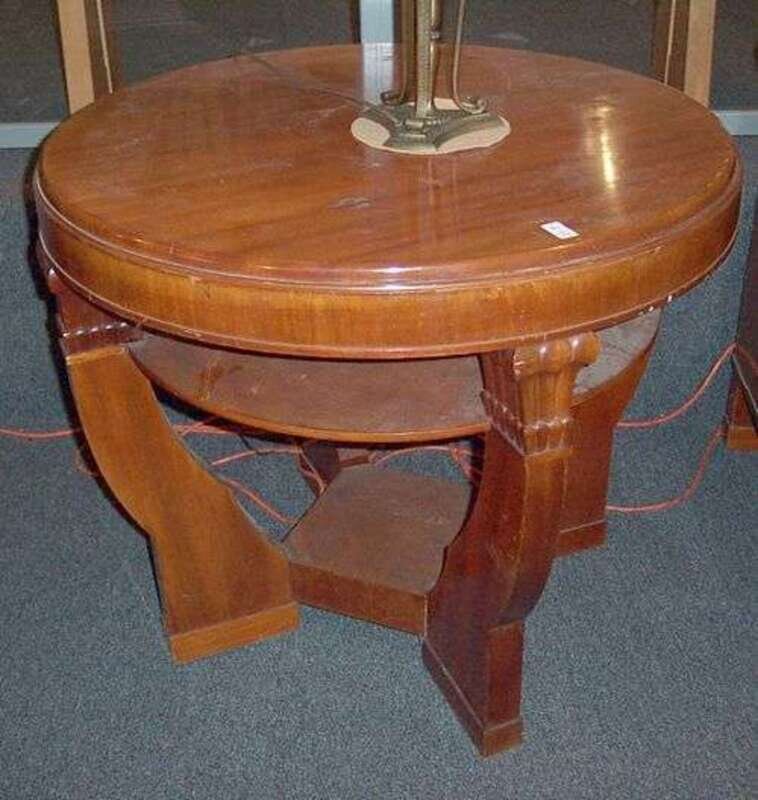 Mahogany. W: 29 3/4, Dia: 35 in.
