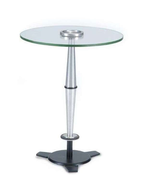 Machined aluminum, glass. H: 26, Dia: 20 1/2 in.