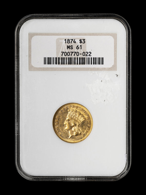 An 1874 Indian Princess $3 Gold Coin (NGC MS61)