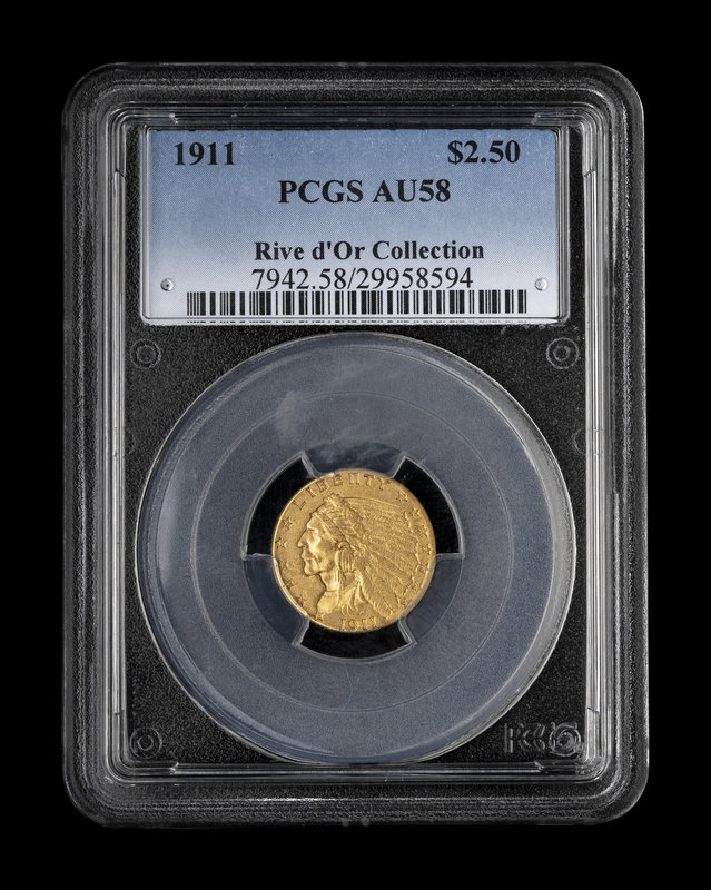 A 1911 Indian Head $2.50 Gold Coin (PCGS AU58)