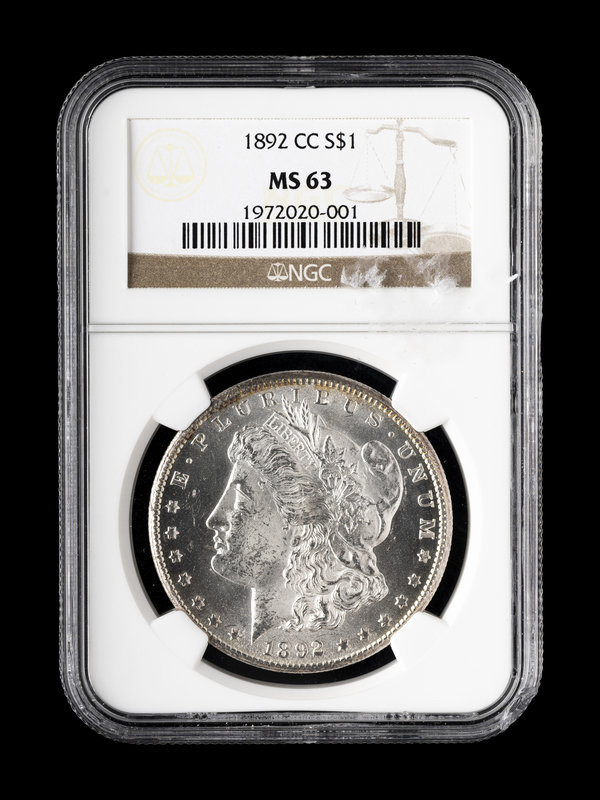 An 1892-CC Morgan $1 Coin (NGC MS63)