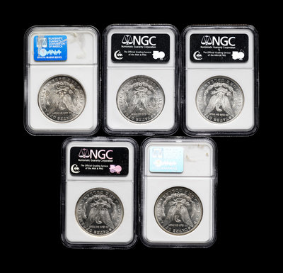 Five Morgan $1 Coins (NGC MS64)
