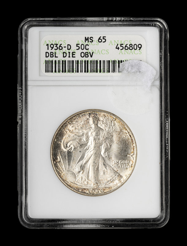 A 1936-D Walking Liberty: Doubled-Die Obverse 50c Coin (ANACS MS65)