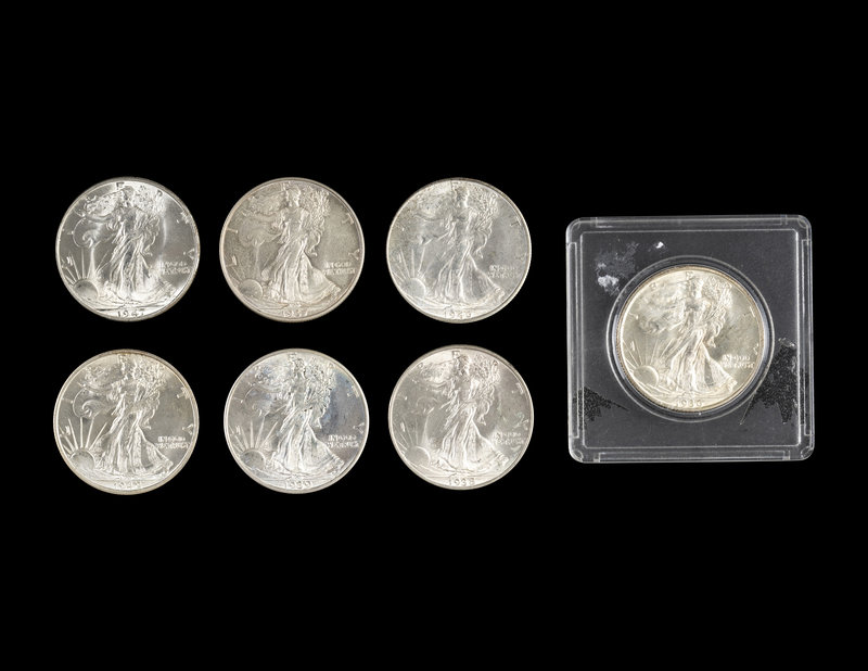 comprising: 1936-D, 1937, 1938, 1939, 1942-S, 1946-S and 1947 examples.