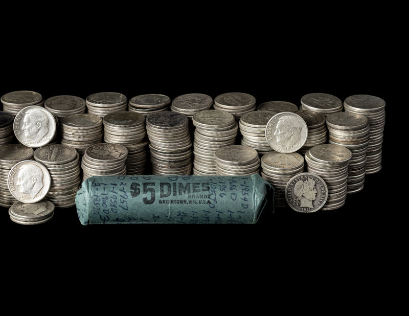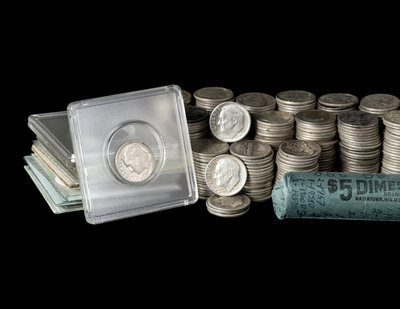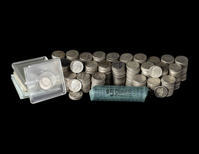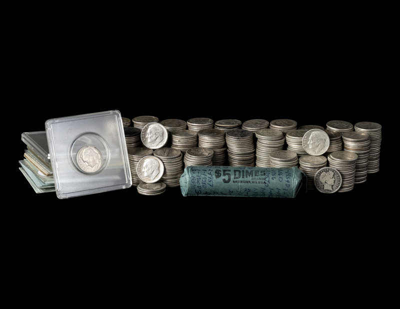 comprising: 1850 and 1866 Seated Liberty, nine Barber, one-hundred Mercury and approximately five-hundred Roosevelt examples;